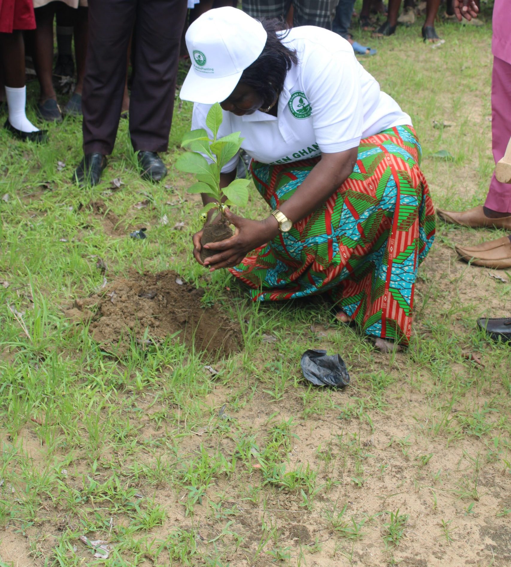 DISTRICT CHIEF EXECUTIVE PLANTING A TREE TO MARK THE GREEN GHANA DAY